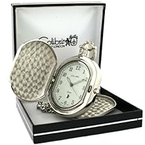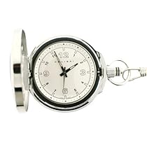 This great looking pocket watch is constructed with an engravable silvertone and black cover. Timepiece features quartz movement and silver dial with white and black arabic numerals. Packaged in a wooden gift box with matching 12 inch chain.[]More detail ...