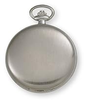 This newly designed pocket watch from Avalon features an accurate 17-jewel mechanical hand wind movement classic brushed finish front and back cover design scratch resistant mineral glass crystal and bold cobalt blue hands. The case measures 49mm wide and is 13mm thick. Also included is the 14" steel link chain. As always all Avalon watches are backed by a lifetime limited warranty. Enjoy!