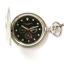 Colibri of London gift set comes complete with high tech looking pocket watch pocket watch chain and handsome gift box. This Colibri full size hunting case watch features high polished silvertone case with unique design on covers engravable area on front side and back Japanese quartz movement dark brown dial lower second sub-dials of day date and 24 hour luminous markers and scratch resistant crystal. Mfg. Limited Warranty. Great Gift That Can Be Personalized!