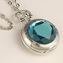 New Ladies Stainless Steel Case Sapphire Decoration Front Necklace Pendant Pocket Watch